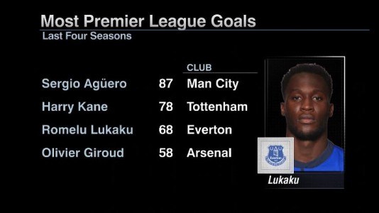-Sebagai striker, Lukaku sanggup melepaskan 434 tembakan dalam empat musim terakhir. Lukaku hanya kalah dari striker Manchester City Sergio Aguero.